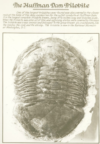In the spring of 1919, while digging deep into the bedrock for Huffman Dam’s outlet structure, a construction crew with the Miami Conservancy District made a truly extraordinary discovery: a perfectly preserved, 14-inch trilobite—the largest complete specimen of its kind ever found.