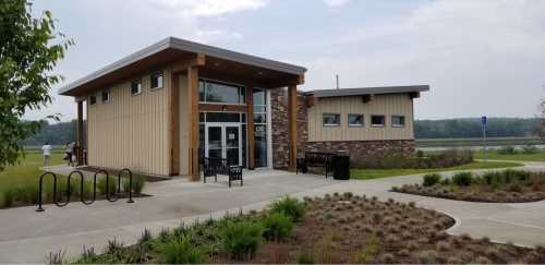 The River Center at Bicentennial Commons is situated along the Great Miami River Trail, and is equipped with a kitchenette, conference room (Great Miami Room), restrooms, two park offices, and 40 parking spaces. This $1.4 million project was made possible in part by a $1 million State Capital Grant administered by the Ohio Department of Natural Resources.