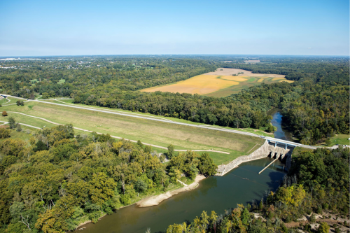 Chief Engineer Arthur Morgan felt strongly that the lands surrounding the dry dams (called storage basins) should be available to the public for outdoor recreation use. The land that is utilized for the flood protection system also provides unparalleled public access to the Great Miami River and its tributaries. More than 20 public jurisdictions in five counties hold permits to operate parks, trails and related attractions on Miami Conservancy District land. Five Rivers MetroParks is the largest of these organizations, providing recreational opportunities on hundreds of acres of flood protection land in the Dayton region.