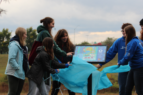 A new Storybook Trail featuring a children's book about water was unveiled on Friday, October 20 at 4PM along the Great Miami River Recreation Trail in downtown Dayton. The signs were installed along the bike trail, overlooking the Great Miami River, just north of Carillon Boulevard (map below). The storybook trail features 12 unique kiosks.